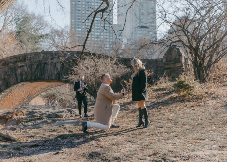 Capturing Love in the City: Nathan and Haley’s NYC Proposal Photoshoot by Gapstow Bridge